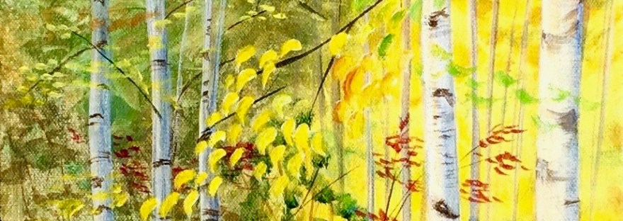 Painting: Birch Mountain, acrylic, 12″x36″. Grace Church, Pleasant St.